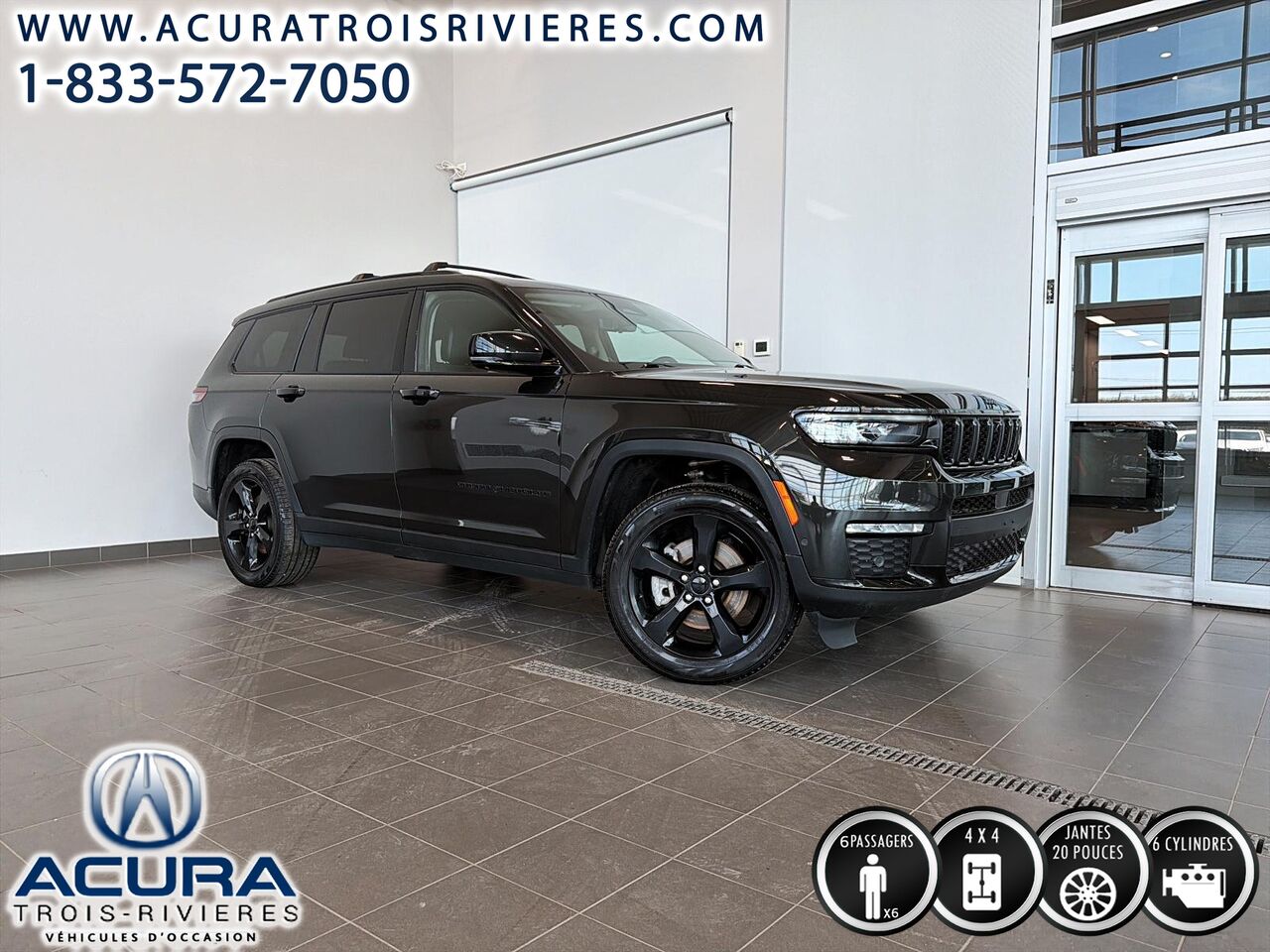 Découvrez le Jeep Grand Cherokee L 2023 Limited 4x4, un véhicule d'occasion qui allie robustesse et confort. Ce modèle est équipé d'un moteur V6 et d'une transmission automatique à 8 vitesses, offrant une conduite fluide et puissante. Avec ses 4 roues motrices, il est prêt à affronter toutes les conditions routières. L'intérieur spacieux comprend des sièges en similicuir chauffants, un système de navigation intégré et une connectivité sans fil pour téléphone. La sécurité est renforcée grâce à des fonctionnalités comme la surveillance des angles morts et l'alerte de collision avant.