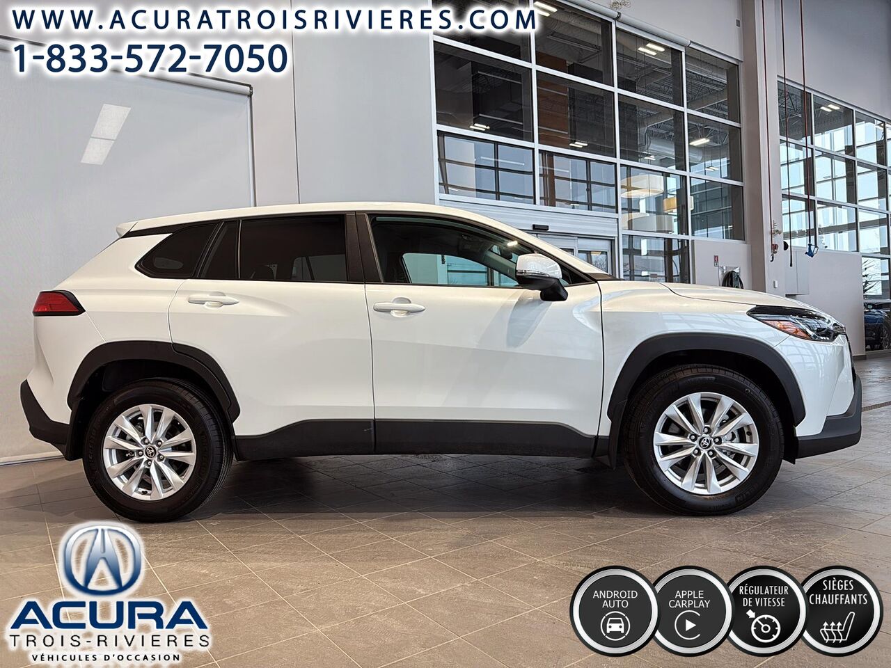 Discover this practically new 2024 Toyota Corolla Cross LE, a magnificent vehicle distinguished by its modern options and low fuel consumption. With very few kilometers driven, this SUV offers you an exceptional driving experience thanks to its 4-cylinder engine and front-wheel drive. Enjoy increased safety with the Toyota Safety Sense 3.0 system, blind spot monitoring, and rear cross-traffic alert. Comfort is also on point with automatic air conditioning, fabric seats, and a heated leather steering wheel.