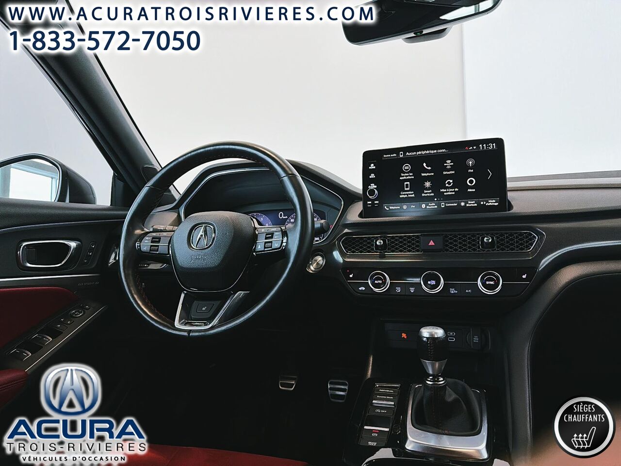 Discover the used **Acura Integra 2023**, a sporty sedan that combines elegance and performance. This **ELITE ASPEC** model stands out with its **6-speed manual transmission**, **18-inch alloy wheels**, and luxurious red leather interior. With only 32,523 km on the odometer, this car has never been in an accident, ensuring additional peace of mind.