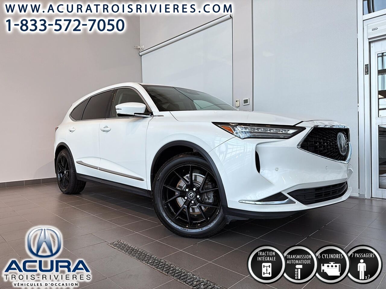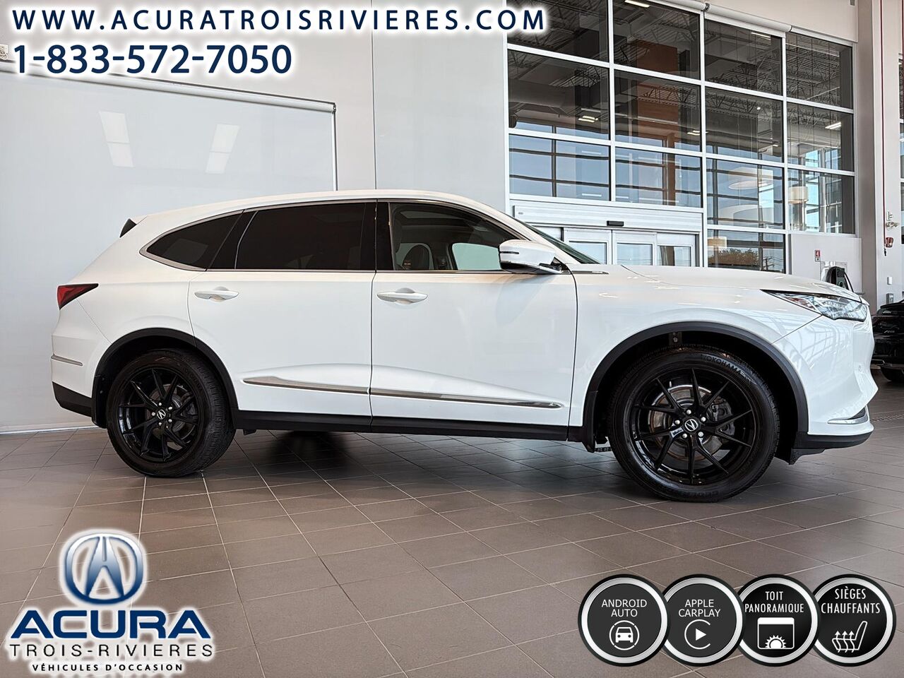 Acura MDX Tech 2022, un véhicule très bien équipé si on le compare à l'équivalent de sa catégorie. En effet, profitez des sièges chauffants à l'avant, et les sièges latéraux arrières sont aussi chauffants, du toit ouvrant panoramique, du volant chauffant, du régulateur de vitesse adaptatif, des systèmes d'info divertissement Apple Carplay et Android Auto, le système de navigation, de la recharge pour téléphone par induction ainsi que de nos quatre aides à la conduite: la détection des angles morts, la détection de déviation de voie, l'atténuation des collisions avants et l'aide au stationnement avant et arrière.