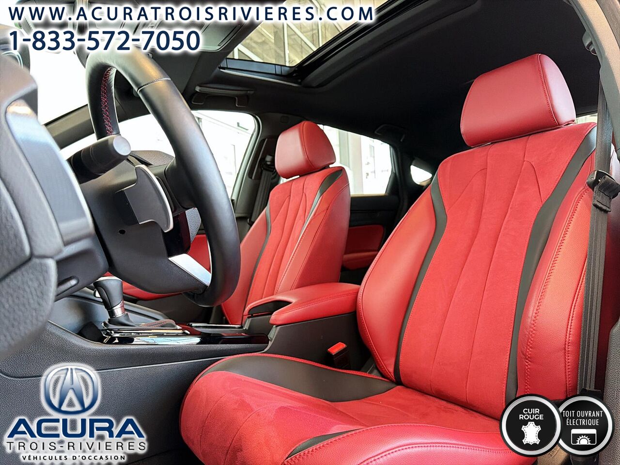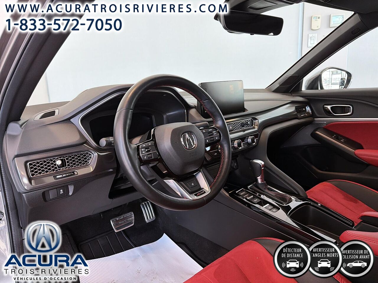 Découvrez la nouvelle Acura Integra 2025 Elite A-Spec CVT, une berline élégante et moderne qui allie style et performance. Avec sa couleur extérieure grise et son intérieur rouge distinctif, elle ne passe pas inaperçue. Sous le capot, elle est équipée d'un moteur à 4 cylindres et d'une transmission à variation continue (CVT) pour une conduite fluide et réactive. Cette Acura Integra est dotée de nombreuses options de pointe, telles que la caméra de recul Multi-Angle avec lignes directrices dynamiques, le système de surveillance des angles morts et le régulateur de vitesse adaptatif avec réglage à faible vitesse. Vous apprécierez également le confort de son climatiseur automatique à deux zones et de son volant chauffant en cuir. Avec seulement 12 038 km au compteur, cette voiture est pratiquement neuve.