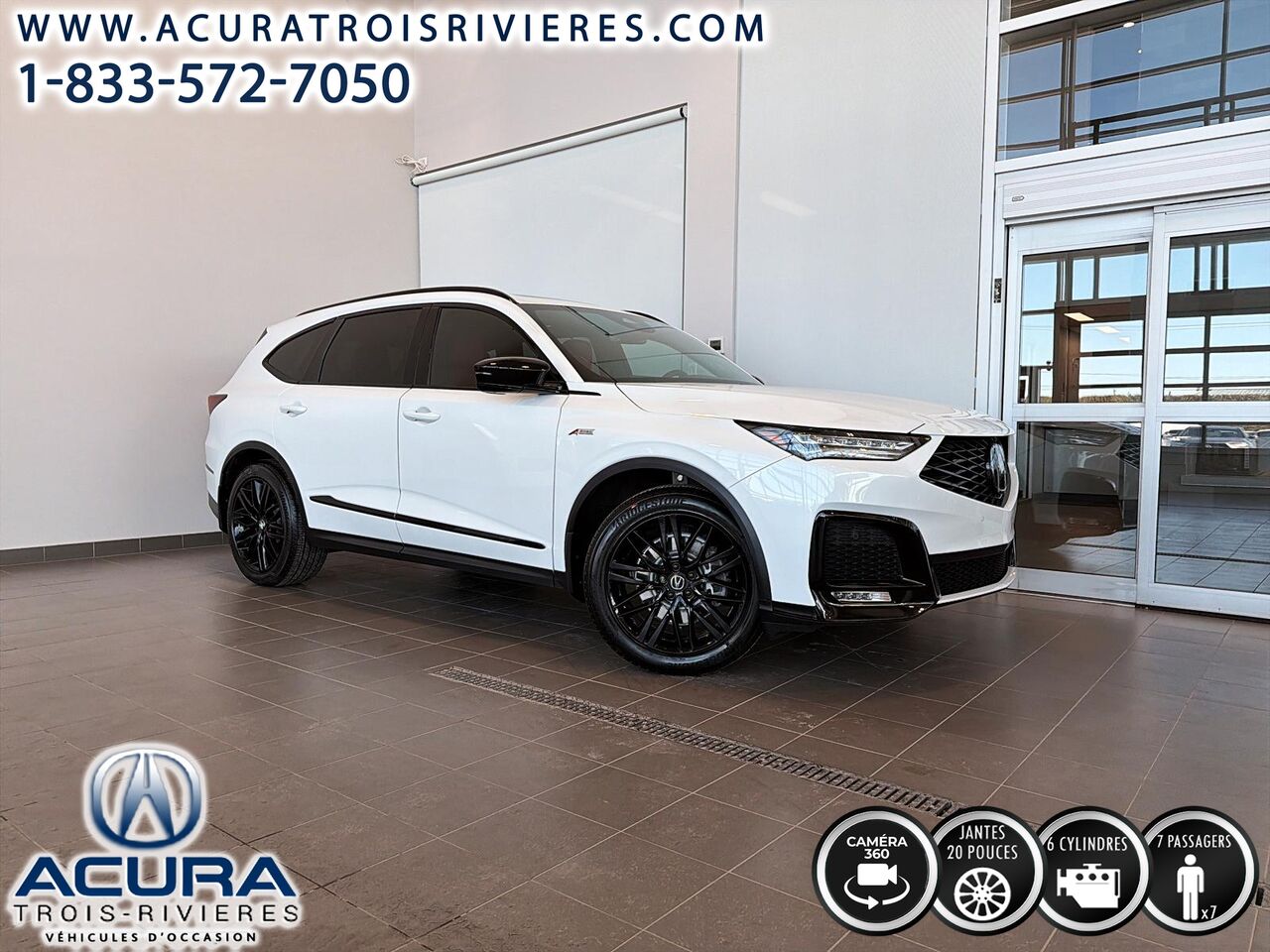 Découvrez ce superbe Acura MDX 2025 A-Spec Platinum Élite SH-AWD, un VUS d'occasion qui allie élégance et performance. Doté d'un moteur V6 et d'une transmission intégrale, ce véhicule offre une conduite dynamique et sécuritaire. Son intérieur luxueux en cuir matelassé et ses sièges avant chauffants réglables en 12 directions assurent un confort optimal. Profitez de la technologie avancée avec le système de caméras à vue aérienne, le régulateur de vitesse adaptatif, et la connectivité sans fil pour téléphone. Ce modèle est équipé de 19 haut-parleurs pour une expérience audio exceptionnelle et d'un toit ouvrant panoramique pour une ambiance lumineuse. Venez découvrir ce véhicule à Acura Trois-Rivières, situé au 6300 Rue Christophe-Pélissier, ou contactez-nous au (866) 950-7050 pour plus d'informations.