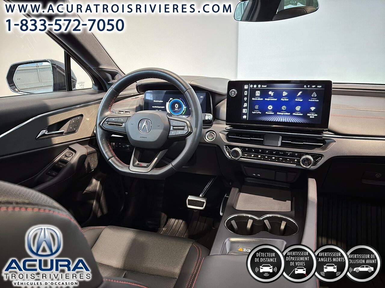 Découvrez le ACURA ZDX A-SPEC 2024, un VUS électrique qui allie performance et élégance. Ce modèle d'occasion, avec seulement 4 704 km au compteur, est équipé d'une transmission CVT et d'un système de traction intégrale pour une conduite dynamique et sécuritaire. Sa batterie au lithium-ion de 102 kWh offre une autonomie impressionnante, et son intérieur en cuir Milano perforé avec microsuède garantit un confort supérieur. Parmi ses nombreuses caractéristiques, vous trouverez un système de navigation intégré avec activation vocale, un toit panoramique en verre, et des sièges chauffants à réglage électrique. La sécurité n'est pas en reste avec des fonctionnalités telles que le régulateur de vitesse adaptatif, l'alerte de collision frontale avec freinage d'urgence automatique, et l'assistance au maintien de voie. Ce véhicule certifié est couvert par une garantie de base de 4 ans ou 80 000 km, ainsi qu'une garantie du système électrique de 8 ans ou 160 000 km.