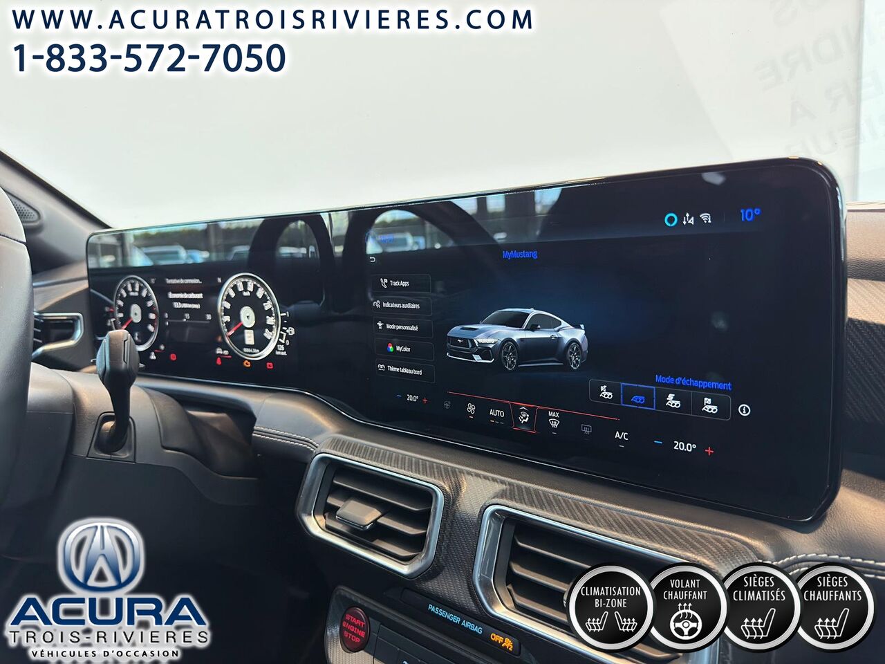 La Ford Mustang GT Premium 2024, un véhicule de performance qui saura vous charmez avec ces accessoires et sa conduite. Confortable, performante et remplie de commodités. En effet, régulateur de vitesse adaptatif, aide au stationnement, atténuation des collisions avant, atténuation de déviation de voie, détecteur d'angles morts, système de d'info divertissement Apple Carplay et Android auto, navigation, écran tactile, climatisation bi-zone, sièges avant chauffants et ventilés, volant chauffant et bien plus encore !