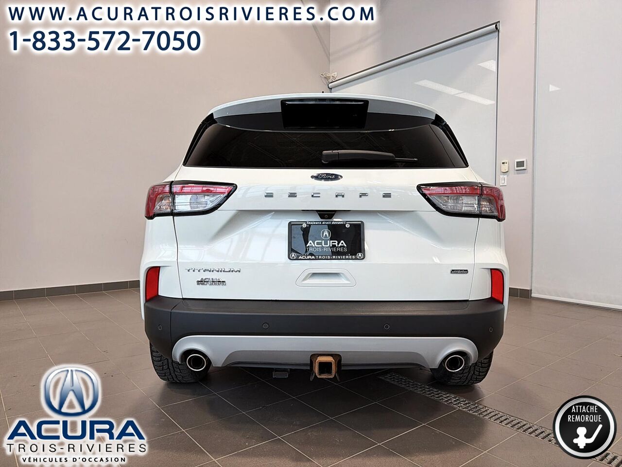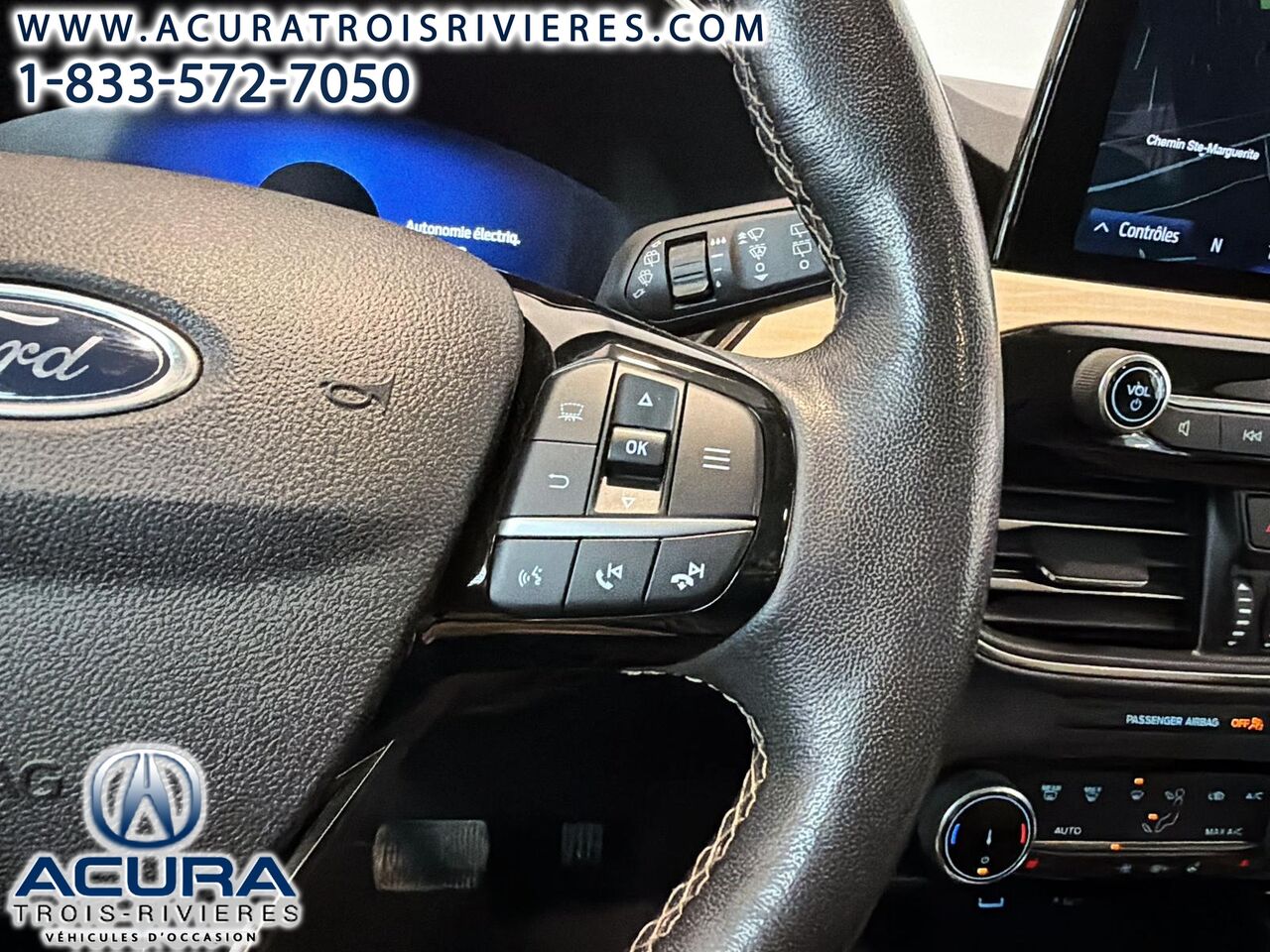 Découvrez le Ford Escape 2022 TITANIUM HYBRIDE, un véhicule d'occasion qui allie efficacité et confort. Ce modèle hybride à traction avant est équipé d'une transmission automatique eCVT et d'un moteur à 4 cylindres, offrant une conduite agréable tout en étant économique en carburant. Avec seulement 65 081 km au compteur, il est prêt à vous accompagner dans vos déplacements quotidiens. L'intérieur, en similicuir ActiveX gris, propose des sièges baquets sport enveloppants chauffants, parfaits pour les hivers québécois. Profitez également du système de navigation intégré à commande vocale et de la connectivité sans fil Bluetooth pour rester connecté en tout temps. Parmi les autres caractéristiques notables, on trouve le système Ford Co-Pilot360 avec surveillance des angles morts et alerte de trafic transversal, assurant votre sécurité sur la route. Ce Ford Escape est également équipé de la climatisation automatique à deux zones, d'un régulateur de vitesse adaptatif et d'un hayon relevable à commande électrique, ajoutant une touche de praticité à votre quotidien.